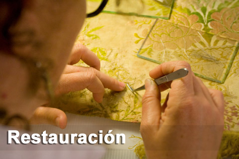 Restauramos todo tipo de textiles históricos y tejidos en uso: indumentaria tradicional y religiosa, uniformes militares, ornamentos litúrgicos, banderas, estandartes, reposteros, encajes, bordados, tapices y alfombras.
